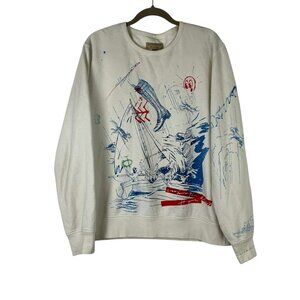 Burberry Garringly Logo Men's Large Sweatshirt Pullover Western White Crew Neck