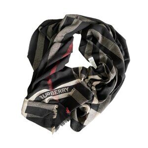 Burberry Gauze Stripe with Branding Scarf, 180cm X 70cm, Wool Silk