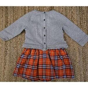 Burberry Girls Plaid Sweatshirt Dress Check Red Gray Baby Size 2T