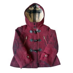 Burberry Girls Wool Blend Pea Coat size 8 Y Toggle Closure Red Nova Check Lined
