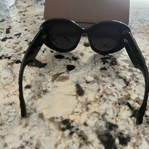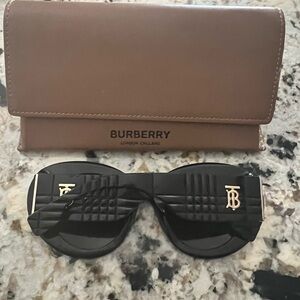 Sleek and stylish Burberry sunglasses. Glossy black oval frames. Perfect for a modern look.