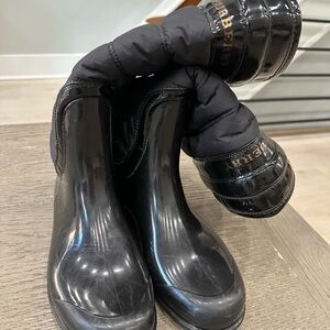 Sleek black quilted boots. Glossy finish. Ideal for winter.