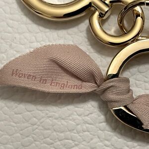 Burberry Gold Heart Bag Charm • Polished Metal with Pink Ribbon NIB