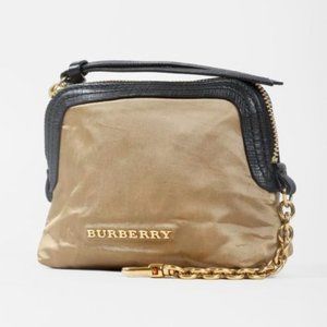 Burberry Gold Satin Leather-Trim Pouch