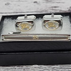 Burberry Gold Tone Cufflinks and Tie Bar Set in EUC