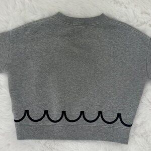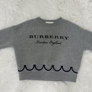 Elevate your casual look with this authentic Burberry London, England cropped sweatshirt. Made from soft, premium cotton, it features the signature Burberry logo across the chest and a chic scalloped hem design for a modern twist. Perfect for layering or styling with high-waisted jeans and sneakers for that effortless luxury vibe.