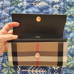 Burberry Halton Check Canvas & Leather Continental Wallet in Classic Monogram.