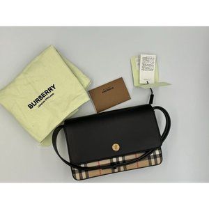 Burberry Hampshire Canvas Compact Leather Check Pattern Shoulder/Crossbody Bag