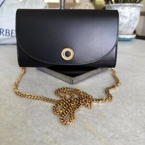 Burberry Hannah Crossbody Bag Black Leather with Gold-tone chain