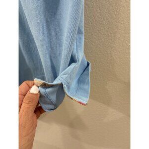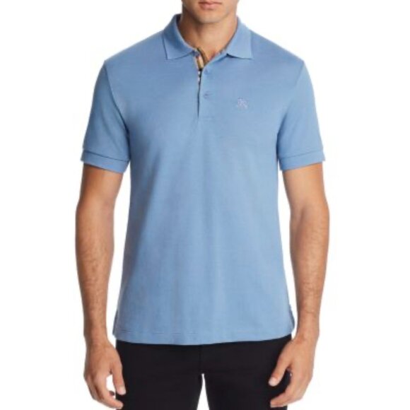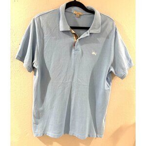 Burberry Hartford Slim Fit Polo Shirt Light Blue Check Placket Men’s Size Medium