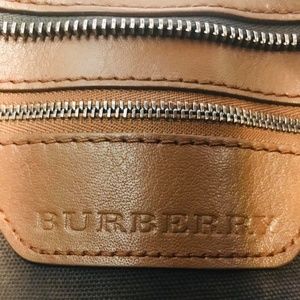 Authentic Burberry Smoked check coated canvas crossbody bag with smooth leather trim. Inverted pleat at front of bag. Leather base, one adjustable crossbody strap of pewter hardware. Top zip closure, one interior zip pocket and two patch pockets. Cotton canvas lining in chocolate brown. Gorgeous tan leather color. Excellent overall condition with minor scuffing.