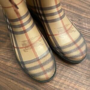 Burberry Haymarket Rubber Rain Winter Lug Sole Boots In Novacheck Size 8