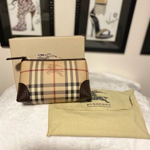 New with tags… Burberry Haymarket check pouch made of coated canvas with leather trim and zip closure. BEAUTIFUL bag!! Measures approx 7"L x 4"H x 2"W