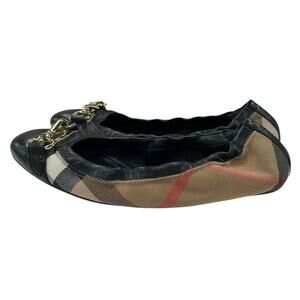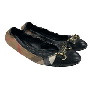 Burberry Heritage House Check Shipley Leather Ballet Flats Womens 36.5 / US 6.5