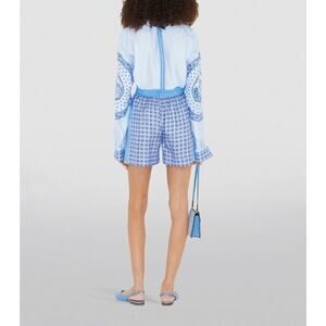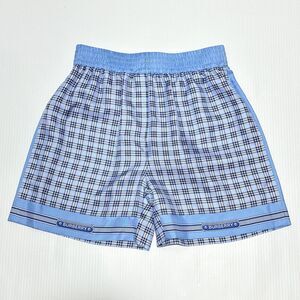 Burberry High Waist Pull On Shorts Blue Check Print 100% Silk Size 2 NWT $820