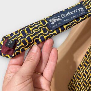 Burberry Horsebit Tie Navy Blue Yellow Silk Classic Preppy Authentic Necktie EUC