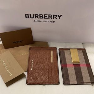 Burberry House Check and Leather Money Clip Card Case