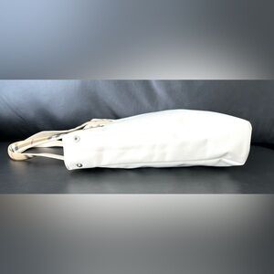 Stylish Burberry tote in ivory. Features iconic check pattern handles. Ideal for everyday use.