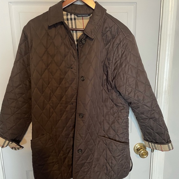 Chocolate brown Burberry button up jacket. Xsmall size but runs bigger so should fit medium. Functional pockets and inside pocket. Very gently used.