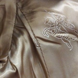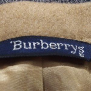 Burberry Jacket Blazer 100% Camel Hair Size 4 Small. Excellent Condition. Shoulder to Shoulder 17 in Shoulder to Wrist 23 in. Shoulder to Hem 28in Underarm left to Underarm right 22in. The epitome of British luxury, Burberry, was one of the hottest luxury brands in the fashion industry throughout 2021. The Luxury brand, present within the fashion industry for 156 years, has showcased several changes of power in the past several years, with ambitions towards bringing the brand higher up-market. Thomas Burberry was 21 when he founded his namesake label–soon renamed Burberry's–in 1856. An apprentice draper with a penchant for outdoor sportswear, he became famous in 1879 for creating gabardine, the world's first waterproof fabric. Burberry's visual identity embodies a horse rider carrying a shield. Although the shield symbolizes protection, the equestrian depicts grandeur, pride, and purity. Colors: The black in the logo represents the elegance, durability, and strength of Burberry's products.