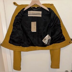 Burberry Jacket Women’s 6 US Genuine Lamb Leather Mustard Yellow Moto Full Zip