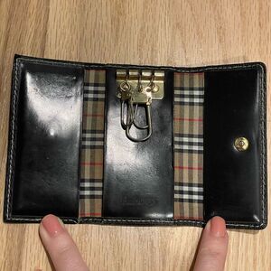 Keywords: Burberry, Burberrys, Vintage, Key Case Wallet, Burberry Check Plaid, Textured Black Leather, 3 Key Fobs, Credit Cards, ID, Cash, Business Cards, Organized, Trendy, Classic, Elegant, Sophisticated.