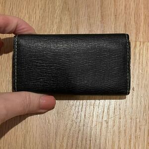The textured black leather exterior adds a touch of sophistication and durability. It features three key fobs of varying lengths, allowing you to keep your keys organized and easily accessible. The wallet also provides ample space for credit cards, ID, cash, and business cards, making it a versatile and functional accessory.