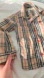 Classic Burberry plaid shirt for kids. Features beige and red tones. Button-down style with iconic design.