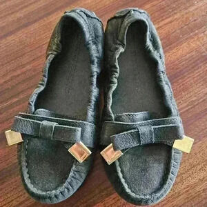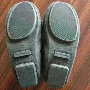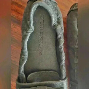 Black Burberry moccasin, soft black suede leather and lining, rubber sole, moc-stitched toe. Never worn, new without box.