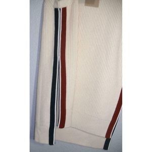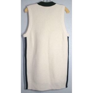 A cozy wool blend construction completes this stylish sleeveless sweater featuring a sporty side stripe accent.