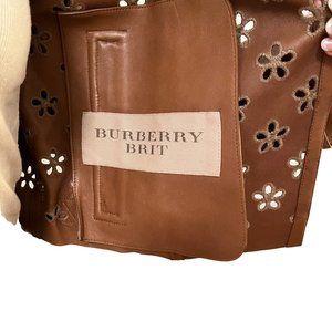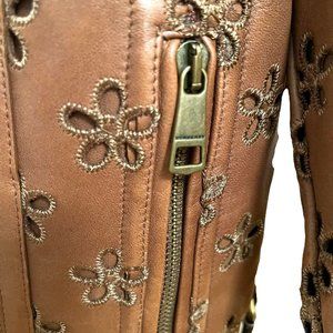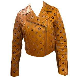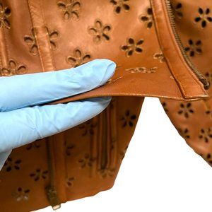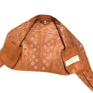 Burberry Lambskin Laser Cut Flower Perforated Motorcycle Biker Jacket Camel Sz4