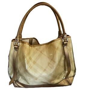Burberry Lawrence Gold Yellow Supernova Plaid Vinyl Tote