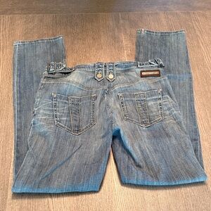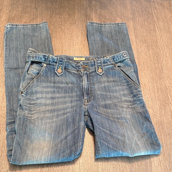 Stylish Burberry boyfriend jeans. Light blue soft denim with a relaxed fit. Perfect for casual wear. Adjustable buckles on sides add a unique touch as well as allowing waist to be adjusted some. Pic with waste measurement shows buckle at last hole. In great condition. Smoke free, pet free home.