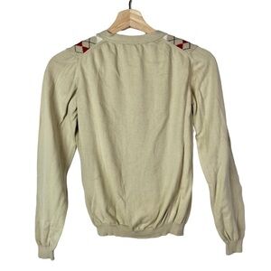 Burberry Light Brown Red & White Argyle Knit Cardigan Sweater XS