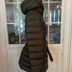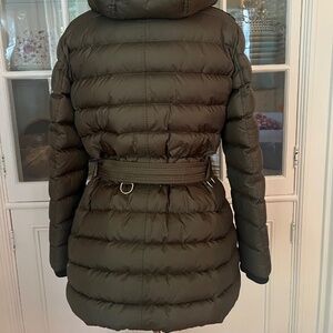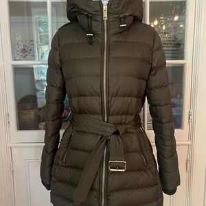 Burberry Limefield Hooded Belted Puffer Jacket Coat Size Extra Large, Green