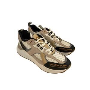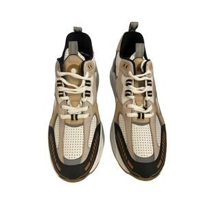 These multi-hued sneakers from Burberry are defined by their curved rubber soles and embossed lettering along the leather paneled uppers. The chunky style is finished with perforated detailing and sports the brand's monogram motif on the heel counters.