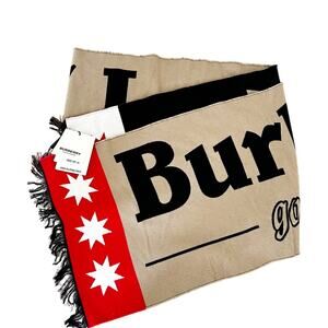 Burberry Logo Pattern Wool-Silk Football Scarf Fringe One Size NWT