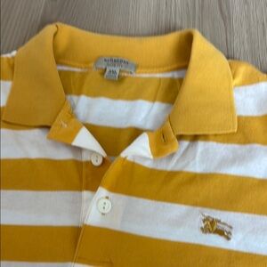 Burberry London 100% Cotton Yellow and White Striped Polo Shirt