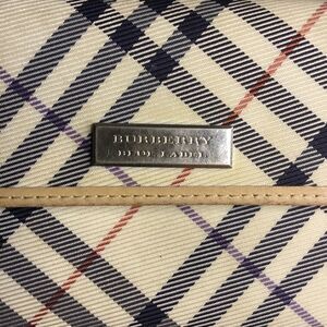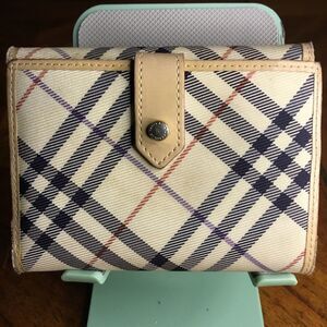 Burberry London Blue Label Novacheck Canvas Ivory Leather Accent Wallet GUC
