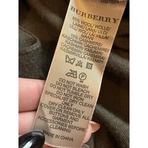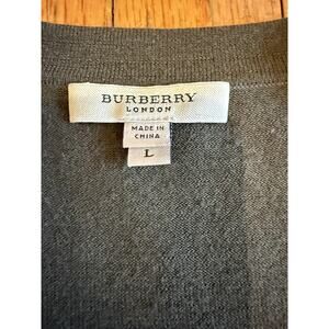 Burberry London Cardigan Sweater Womens Large Green Wool Cashmere Tonal Check