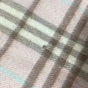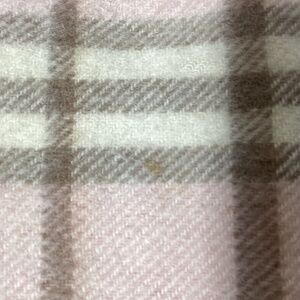 This scarf needs a good dry cleaning. It has a hole and several small stains. Price reflects that.