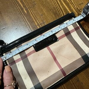 Burberry London Check Canvas Zip Pouch with Black Patent Trim