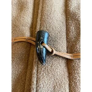 • Toggle closure with leather loops