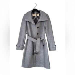 Burberry London Gray Wool & Cashmere Belted Trench Dress Coat