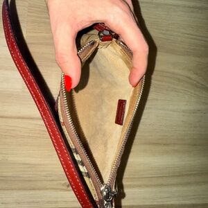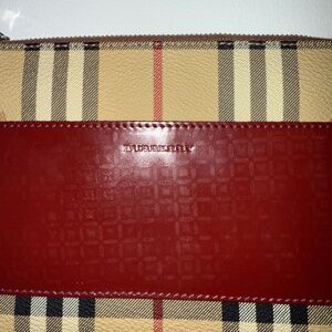 Burberry Haymarket Check Shoulder Bag with a red patent leather front pocket. Excellent condition. Authentic vintage designer bag.