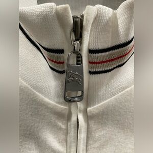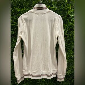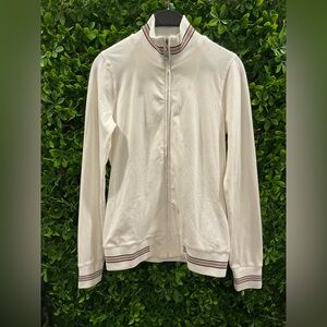 Matching jacket and pants set. Features striped accents on collar,waist and cuffs. Perfect for layering.