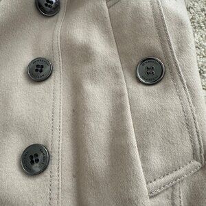 Burberry London Littleton wool trench coat. Double breasted, with button pockets and a cute peplum hem detail. Rare find, purchased directly from Burberry store in NYC! This is the exact cream color that Kate Middleton wore.