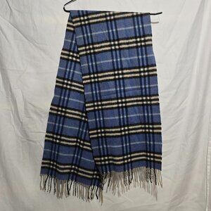 Burberry London Made in England 100% Cashmere Scarf Blue Black White Plaid 12x56