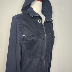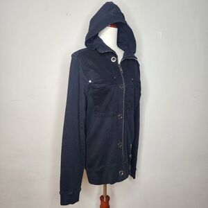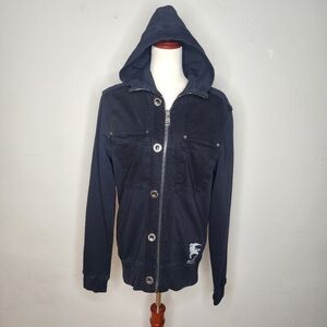 Burberry London Men's Black Knit Hooded Utility Jacket with Horse Logo SZ Small