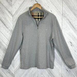 Burberry London Mens Size Large Gray Pullover 1/4 Zip Mock Neck Long Sleeve